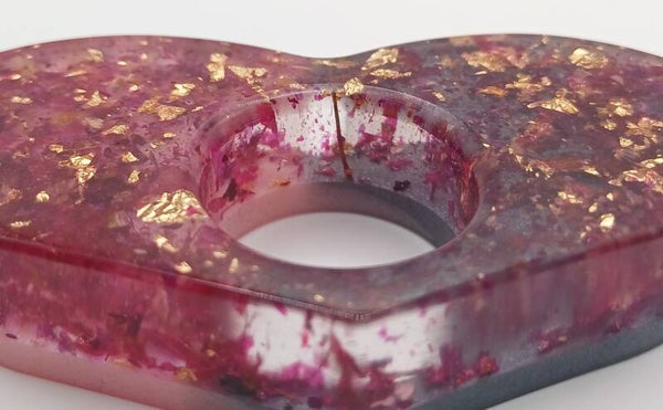 La Bague de Lecture est un accessoire pratique et esthétique qui permet de maintenir les pages ouvertes d'un livre ou d'un document pendant la lecture de celui-ci. Elle se place entre les pages afin d'éviter qu'elles ne se referment ou ne se froissent. Les bagues sont coulées avec des roses séchées, des feuilles d'or et/ou des pigments nacrés.