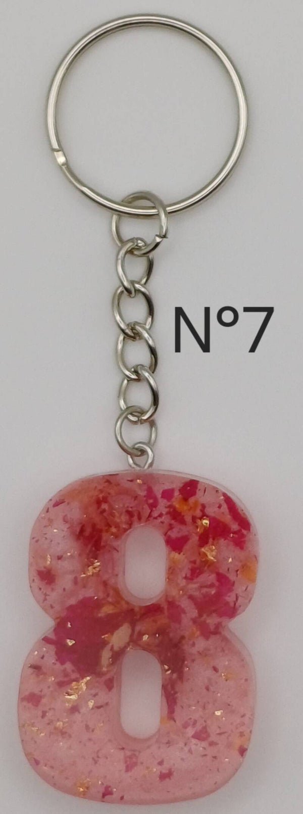 Les Chiffres sont coulés avec des roses séchées, des feuilles d'or, ainsi que des pigments nacrés et/où avec des paillettes.